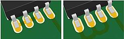 Прямое соединение двух SMD площадок в SMD компоненте или под ним может быть приемлемым электрическим решением в определенный момент, но это может создать проблемы во время последующего тестирования. Например, во время AOI (автоматическая оптическая инспекция), камера может не иметь возможности определить замыкание, так как пайка корректного соединения с SMD площадкой мешает процессу визуальной инспекции. Небольшие изменения в разработке ПП могут избавить от этого и сделать жизнь проще для всех сторон