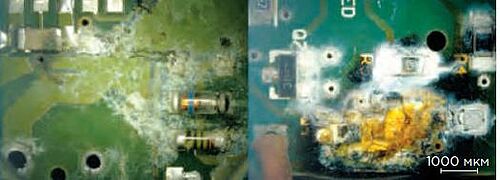 В последнее время большое внимание уделяется поиску причин сбоев в работе ЭБ из-за воздействия влаги и грязи. И электромеханическая миграция имеет первостепенное значение в подобных ситуациях. Это особенно актуально для таких сфер применения электронных приборов как автомобильная, специальная и телекоммуникационная отрасли, где устройства РАЭ должны исправно функционировать в неблагоприятных условиях (большие перепады температур, высокая влажность и т.п.). Вот почему так важно чётко определить те изменения, которые происходят в приборе под воздействием сложных климатических условий в совокупности с загрязнениями поверхности.