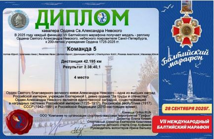 Балтийский марафон — традиционное петербургское спортивное мероприятие. В этом году забег прошёл под девизом моряков «За труды и отечество», который является девизом Ордена Российской Империи - Ордена Святого Александра Невского. Каждый участник команды А-КОНТРАКТ получил медаль-реплику Ордена Святого Александра Невского, небесного покровителя Санкт-Петербурга.