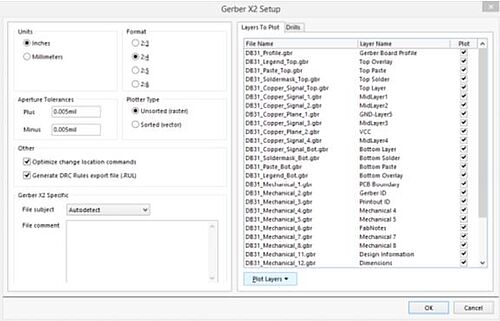 Создание файлов IPC-2581 [9-11] очень просто, как и с большинством EDA инструментов, файлы можно создать минимальными усилиями пользователя. Выберете предпочтительные единицы (метрические или дюймовые) и точность числа, определенные в файле, и начинайте экспорт.