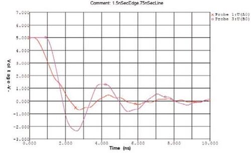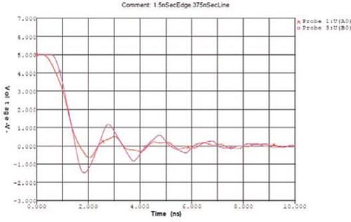 Теперь, когда граница между низкой и высокой скоростью установлена, это можно перевести в правило длины с целью установки, когда правила линии трансмиссии должны применяться к линии. Линии меньше, чем эта длина, можно отнести к категории «не важно». С линиями длиннее, чем эта длина, надо работать с использованием правил целостности сигнала. В примере – TEL составляет 1,5 наносекунды. ¼ от этого – 375 пикосекунды. В большинстве печатных плат сигналы проходят примерно 6 дюймов за одну наносекунду. Соответственно, для фронта в 1,5 наносекунду линии, длиннее 2,25 дюймов потребует контроля импеданса и некоторой формы управления отражениями.